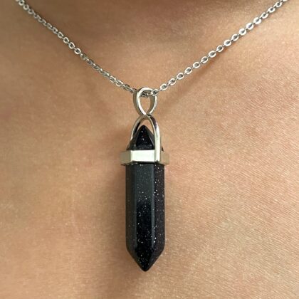 Blue Goldstone Double Terminated Points Necklace