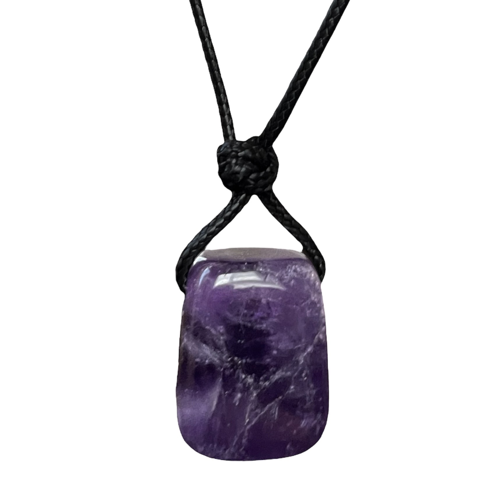 Amethyst Tumbled Drilled Necklace on an adjustable strap.